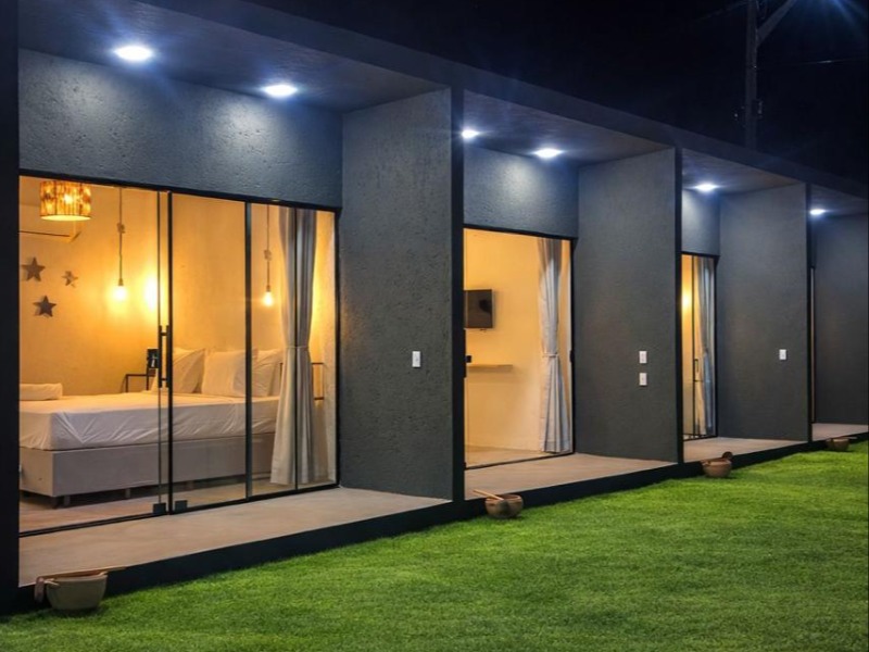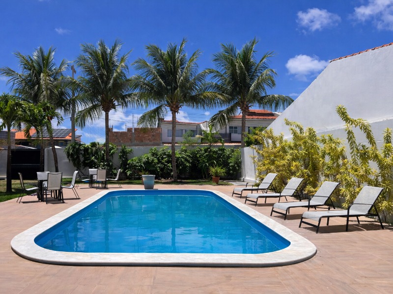 A área externa, com piscina rodeada por jardim tropical, convida ao descanso após um dia de praia ou a momentos de contemplação sob o céu de Milagres. As suítes oferecem conforto na medida certa, com decoração leve e funcional, criando o cenário ideal para noites tranquilas e manhãs sem pressa.